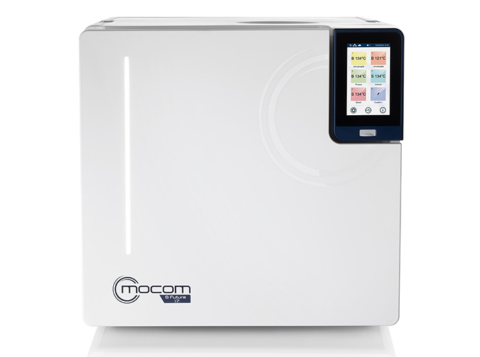 Autoklaw Mocom B Futura został stworzony z myślą zarówno o niewielkich gabinetach, jak i większych placówkach stomatologicznych – jest kompaktowy, łatwy w obsłudze i niezawodny w codziennym użytkowaniu. W przeciwieństwie do tradycyjnych autoklawów, Futura nie wymaga podłączenia do zewnętrznego systemu uzdatniania wody. Dzięki filtrowi demineralizującemu umieszczonemu w głównym zbiorniku, urządzenie można napełniać zwykłą wodą z kranu. Rozwiązanie to pozwala zaoszczędzić miejsce, uprościć codzienną obsługę i ograniczyć koszty.